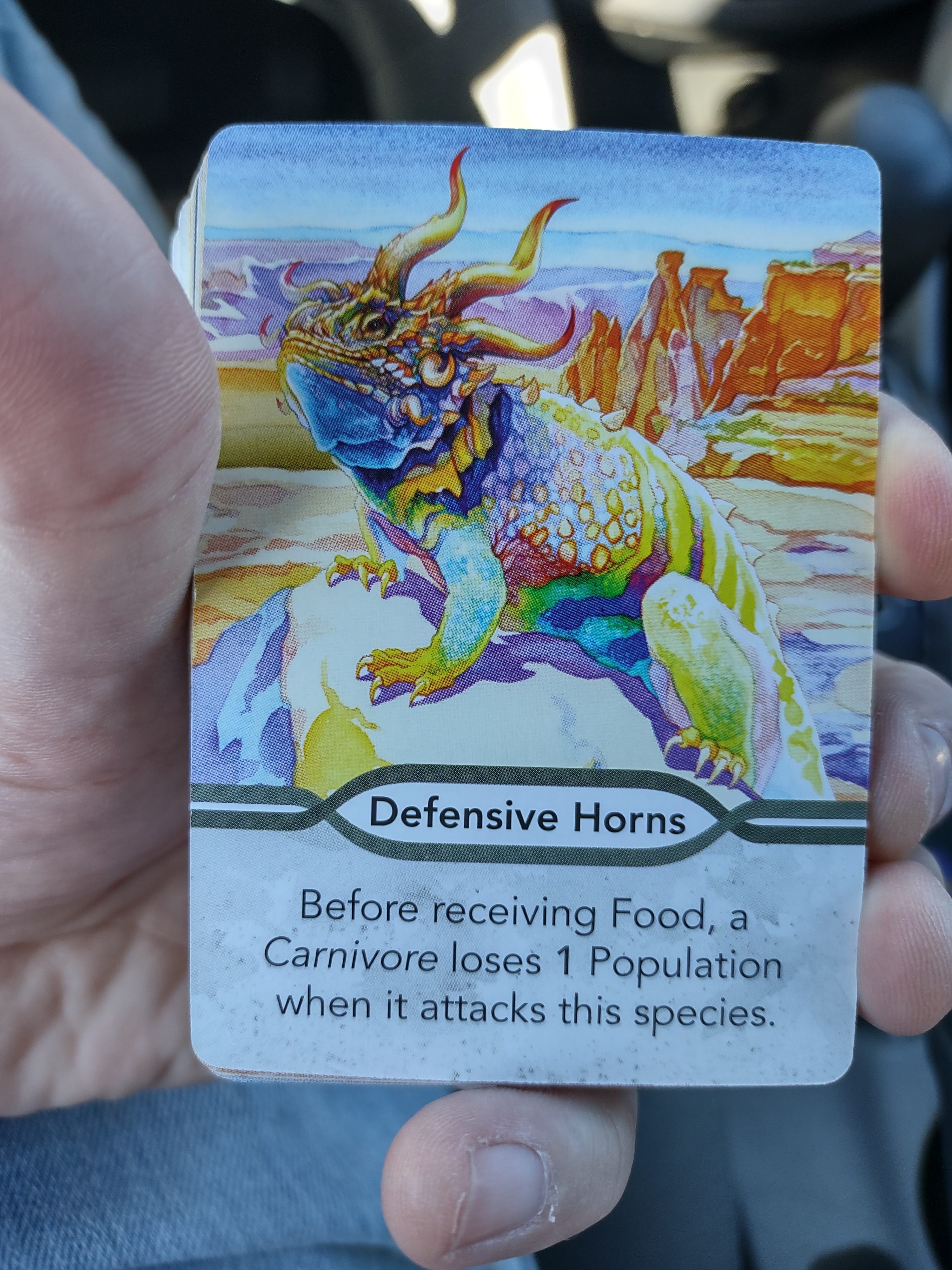 In the game, you fight over what little plant food is available on the planet, and make your species grow traits (flight, burrowing, scavenger, etc) to be able to get to the food first.